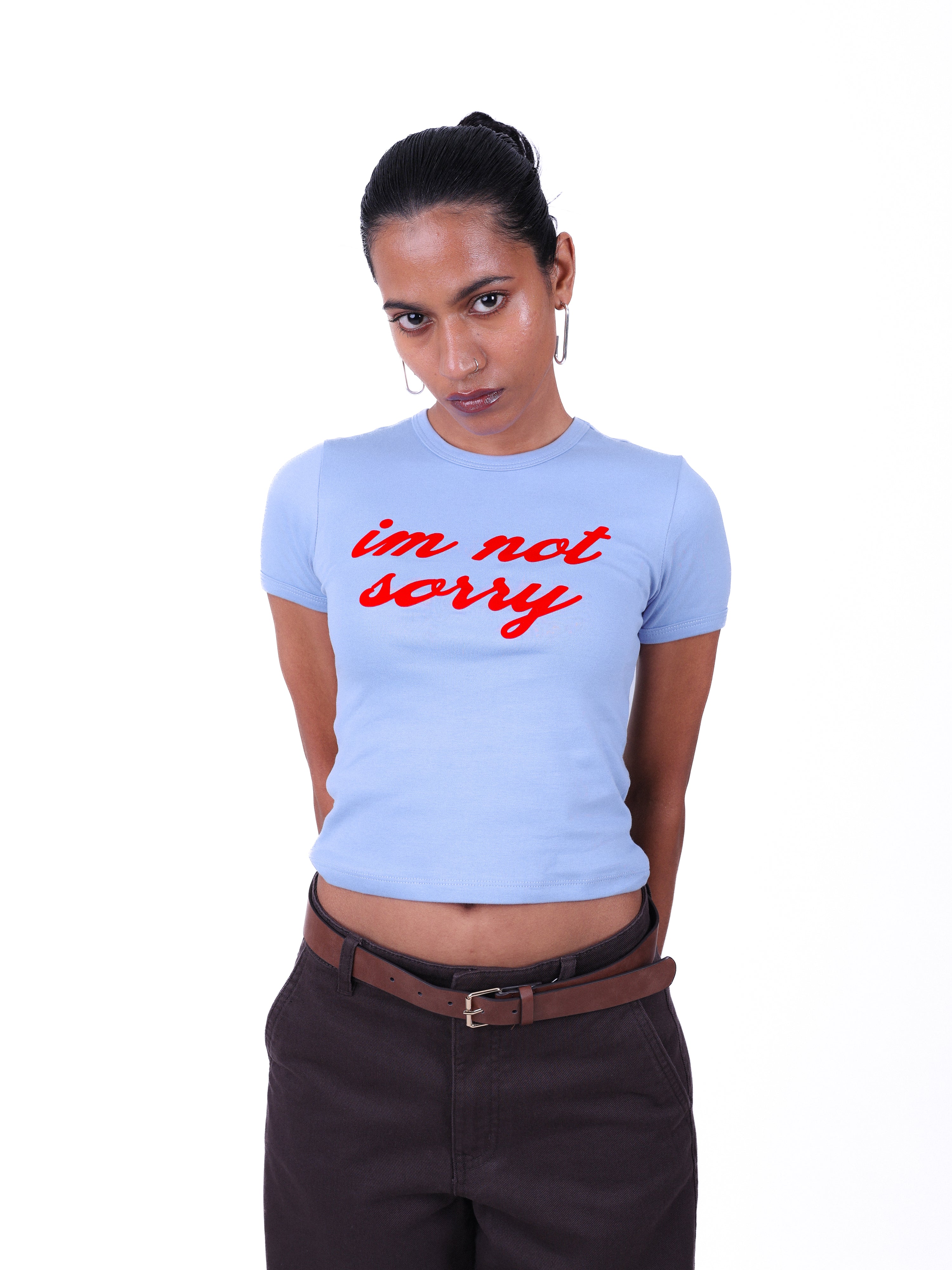 Not Sorry Fitted Tee Blue